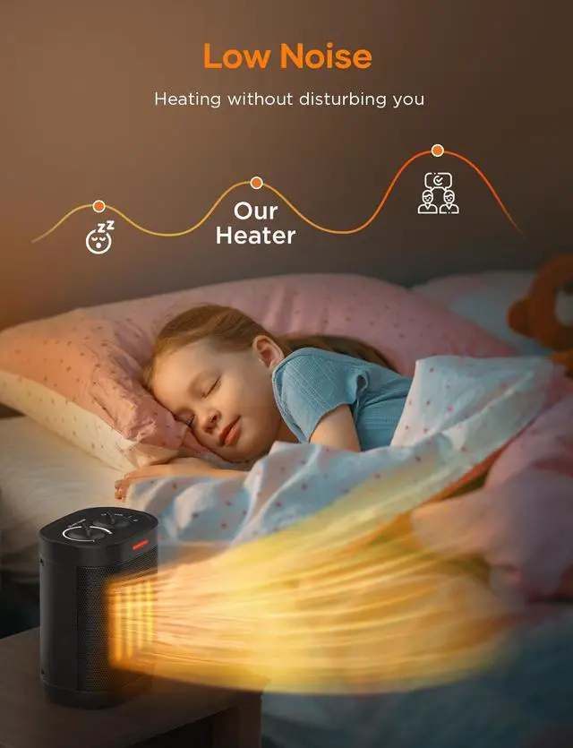 Turn it on while you sleep in the bedroom, the ceramic heater heats up very quickly and is so quiet that almost no noise disturbs you.