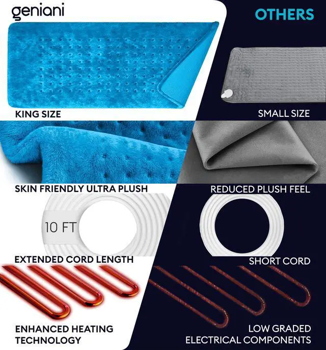 Each Geniani heating pad features an incredibly soft and luxurious texture, providing ultimate comfort and coziness.
