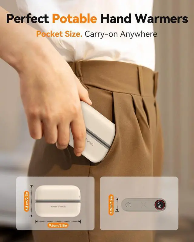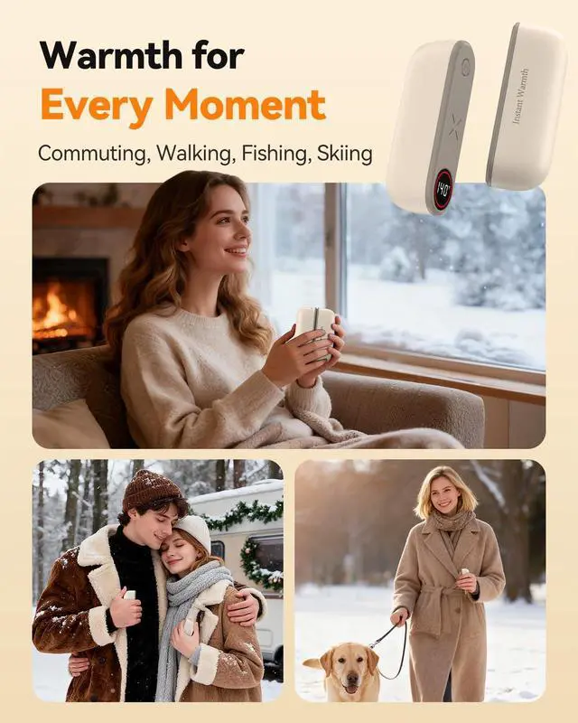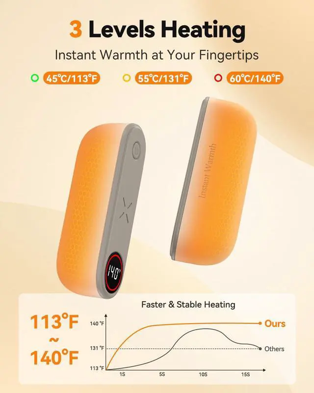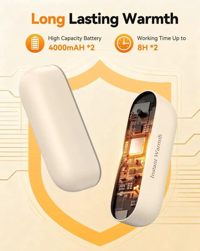 Extended Battery Life & Dual-Purpose Design: Each hand warmer houses a 4000mAh rechargeable battery, together offering 8000mAh total capacity. Enjoy up to 8+ hours of continuous heat on low setting.