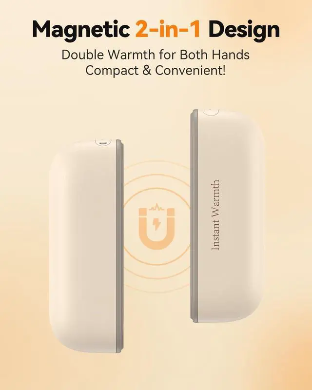 Magnetic Design Combine or Share Freely: Strong built-in magnets let you snap the two warmers together for a single palm-sized heater or separate them to warm both hands. Share one with a friend or loved one perfect for couples, travelers, and outdoor activities.