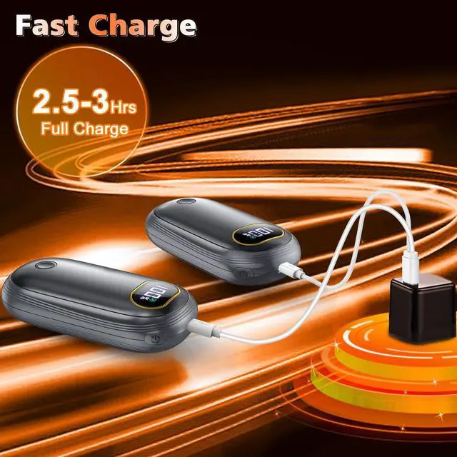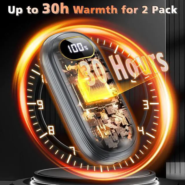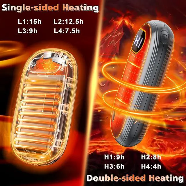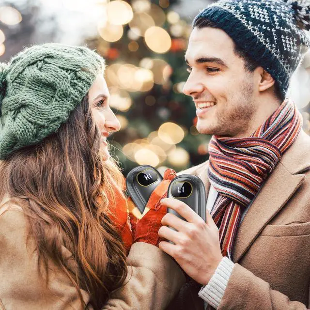 Rechargeable Hand Warmers 2 Pack with LED Display Reusable hand warmers built-in with LED display to displays remaining power that relieve the anxiety caused by low battery. It also displays the heating levels. The portable hand warmer has 8 heating modes with 4 heating levels heat up to 127.4. L1/L2/L3/L4 for single-sided heating. H1/H2/H3/H4 for double-sided heating. Rechargeable pocket hand warmers make perfect Christmas gifts!