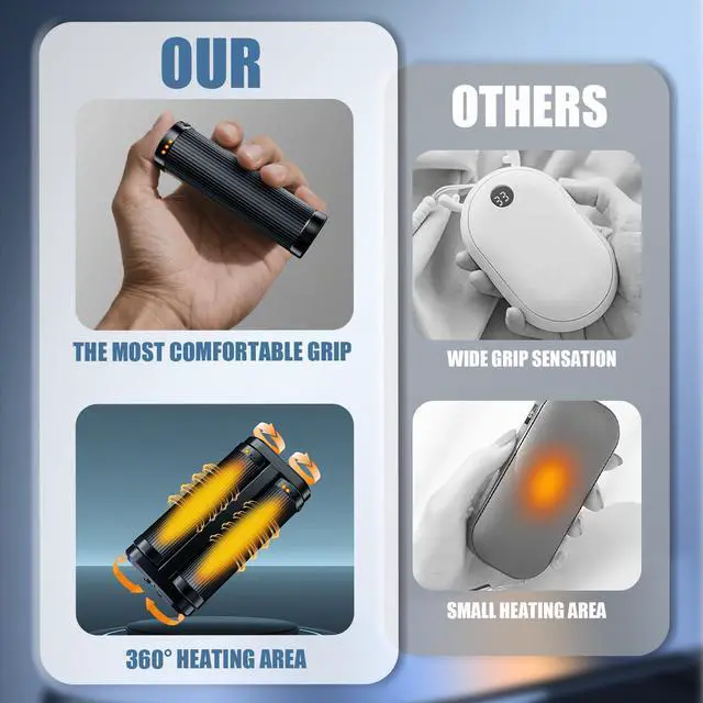 This rechargeable hand warmer is UL/FCC/CE and ROHS certified, providing you with a safe user experience. A set of 2 symmetrical hand warmers that can be combined into a palm-sized hand heater, providing 360-degree warmth for your hands. Alternatively, you can use them separately.