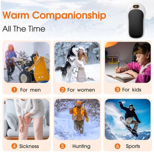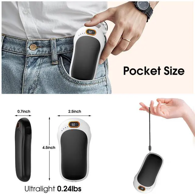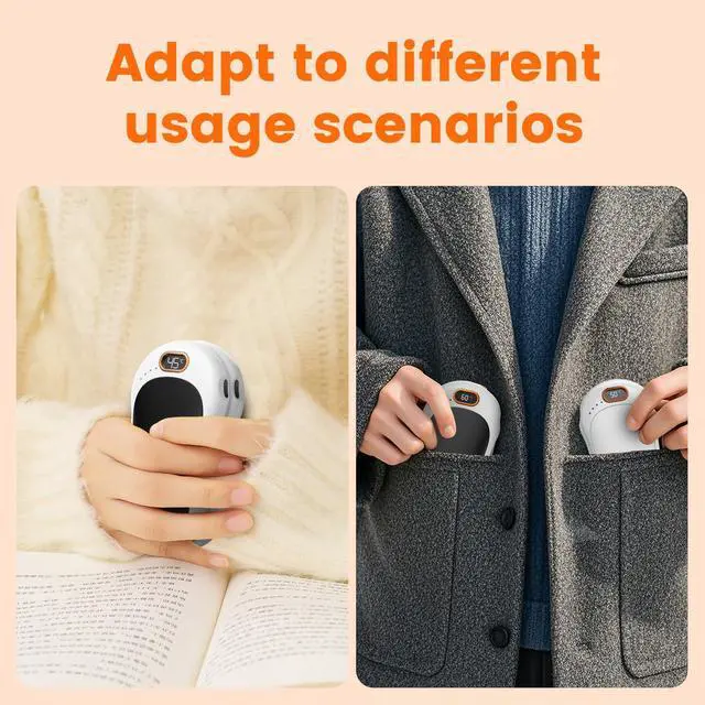 Magnetic 2-in-1 hand warmers:Our electric hand warmers come with an magnetic 2-in-1 design. This feature allows you to combine the two parts into one or use them separately as you please. It offers incredible versatility - you can hold it in one hand for personal warmth, share it with your friend or family so both of you can stay cozy, or use one in each hand for maximum heat. Whether you're on your daily commute, out on an exciting outdoor adventure, this hand warmer is your perfect companion.