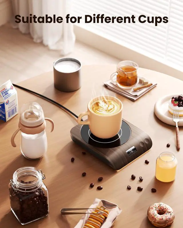 Suitable for Most Mugs: This tea warmer with large heating plate, fit for different cups, ceramic mugs, glass cups, stainless steel cups, we recommend using a flat bottomed cup; The coffee warmer plate can also heating beverages, tea, cocoa, chocolat