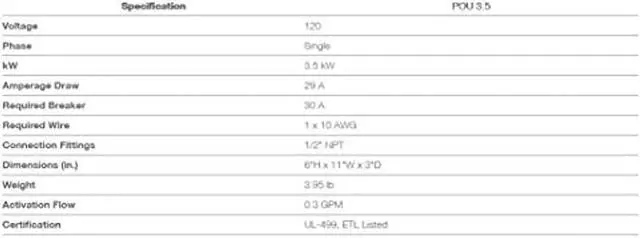 3.5 kW 120V Point of Use Electric Tankless Water Heater - POU3.5