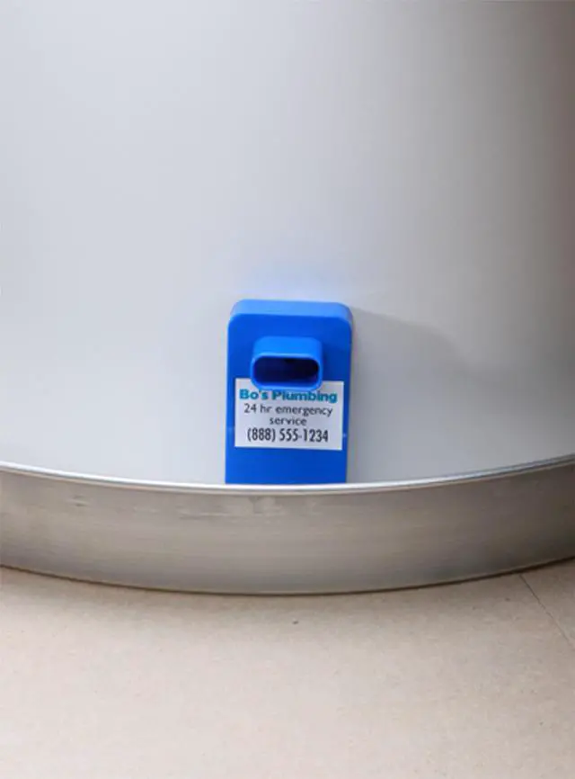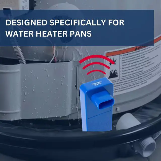 Flood Buzz Blue is the only water leak alarm designed specifically to fit into water heater pans