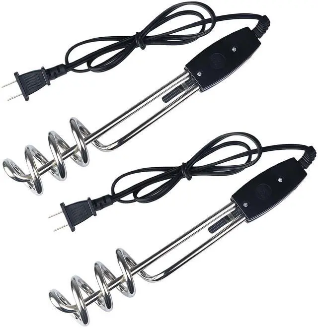 2 Pack 1000W Immersion Water Heater - 110V 10 Inch Submersible Heating Coil for Buckets, Hot Tubs, Jugs & Outdoor Camping