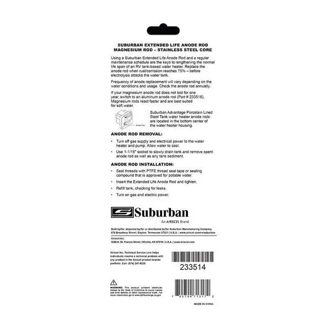 ![]() Suburban 2 Pack Anode Rod Magnesium | ![]() Suburban Anode Rod | ![]() Suburban Extended Life Anode Rod | |