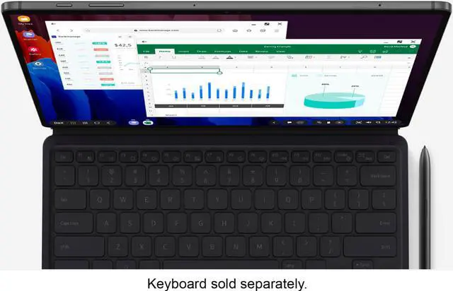 With the power of a PC and the mobility of a tablet, the Samsung Galaxy Tab S7 Wi-Fi is your secret weapon for getting more done—wherever you are. Enjoy the advantages of a true 2-in-1 device, where an expanded keyboard(1) and built-in memory up to 128GB are backed by a battery that lasts the entire workday(2) for ultimate portability. With a redesigned, minimal-lag S Pen that lets you control a presentation with the tap of a finger and an expanded edge-to- edge screen(3) for better streaming, gaming and video chatting, the Galaxy Tab S7 Wi-Fi simplifies life, work and play. **(1) Keyboard sold separately. **(2) Battery life may vary depending on network environment, usage patterns and other factors. **(3) S7 11” screen is a TFT LCD screen.