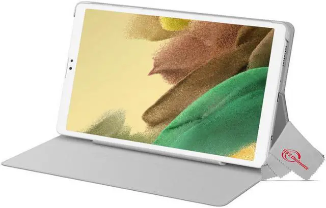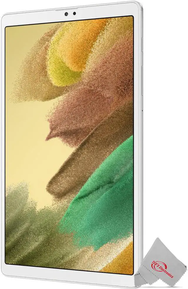 Samsung 8.7" Galaxy Tab A7 Lite 32GB Tablet. Featuring a slim metal frame, this compact tablet is designed for easy one-handed use before quickly slipping it into your bag when traveling. The MediaTek MT8768T processor combines a 2.3 GHz quad-core CPU with a 1.8 GHz quad-core to deliver fast and efficient performance when run a variety of Android apps and games. Other features include 3GB of memory, 32GB of internal storage, and a microSD slot that supports up to 1TB cards to transfer photos, videos, and other files. Its 8.7" 1340 x 800 resolution display is driven by PowerVR GE8320 graphics and works with the Dolby Atmos enhanced stereo speakers to immerse you in movies, games, and music. Connect a pair of headphones to the 3.5mm audio jack for added listening privacy. Video chat with friends and family and capture important moments with the 2MP front-facing and 8MP rear cameras. Then share them online by connecting to compatible networks with the integrated 802.11ac Wi-Fi. With Samsung Kids content and comprehensive parental controls, your children can safely learn and play. The 5100 mAh battery is designed to provide hours of use. Android R is the installed operating system.