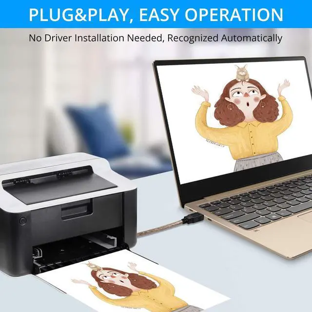 Wide Compatibility: Printer cable compatible with HP deskjet 2300 etc..., HP officejet 5740,Envy 4520 etc..., HP photosmart 5510/5520/7520,Canon MG5750/MG3550/MG7550, Epson XP225/XP245 /XP425,Brother L2520DW,Dell C2665DNF,Samsung Xpress SL-C1860FW, Oki ML1120/514DN, Schiit Modi, DAC etc...
