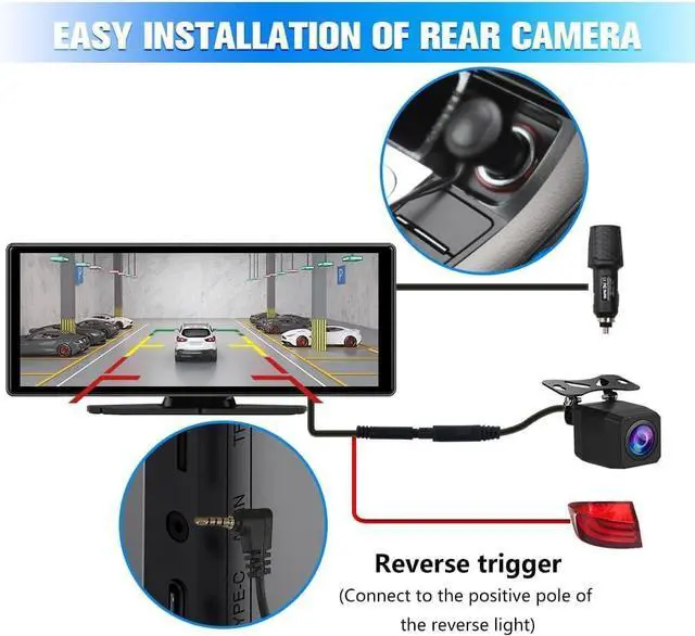 • 1080P Backup Camera with Parking Assist Includes a 1080P rear camera with night vision and parking guidelines to help you reverse safely and see everything behind your vehicle.