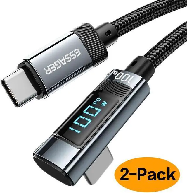 Jansicotek [2-Pack 6.6ft] 90 Degree USB C to USB C Cable 5A PD 100W C to C Super Fast Charging,LED Display USB C Charging Cable 200Mbps Data Nylon Braided Charge Cable for Samsung Galaxy iPad MacBook