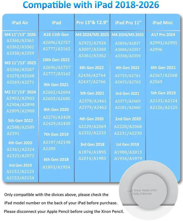 XIRON stylus pen special for iPad 2018 models or above. Precise positioning, no delay in touching screen, easy to use like a pencil!