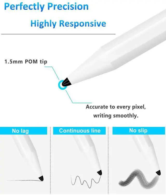 - Upgraded 1.5mm Tip: The ultra-fine 1.5 mm tip makes this iPad Pen as precise as real pen.The 1.5 mm fiber pen tip will not scratch the screen.The best stylus for drawing, sketching and note-taking on iPad.