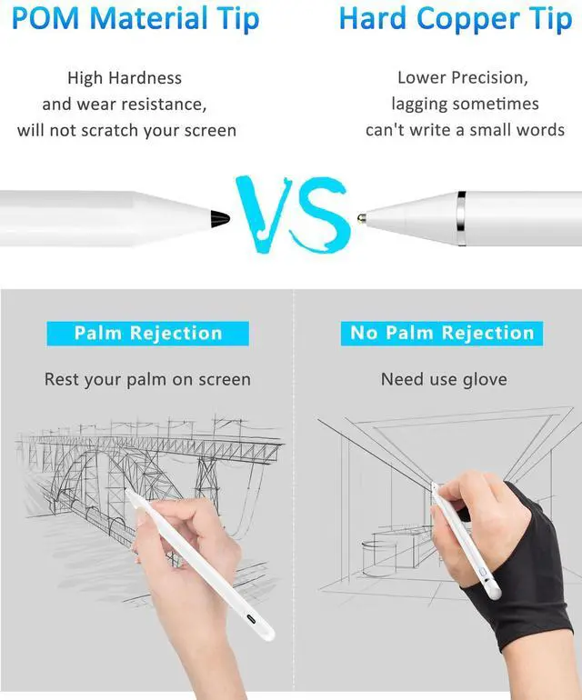 - Support Palm Rejection: Palm Rejection Technology Avoid touching the surface of the screen during writing .The Stylus Pen offers a palm rejection function which allows you to rest your palm comfortably on the screen while using our pen. Get rid of the uncomfortable stylus glove.