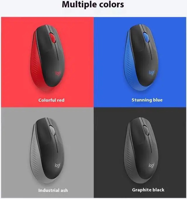 The Logitech M190 is a full-size wireless mouse with a comfortably shaped design that conforms to the natural curves of medium to large hands, allowing you to work wirelessly and move freely with little to no delay or packet loss.