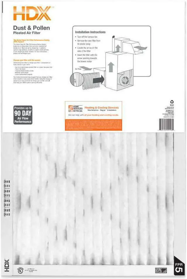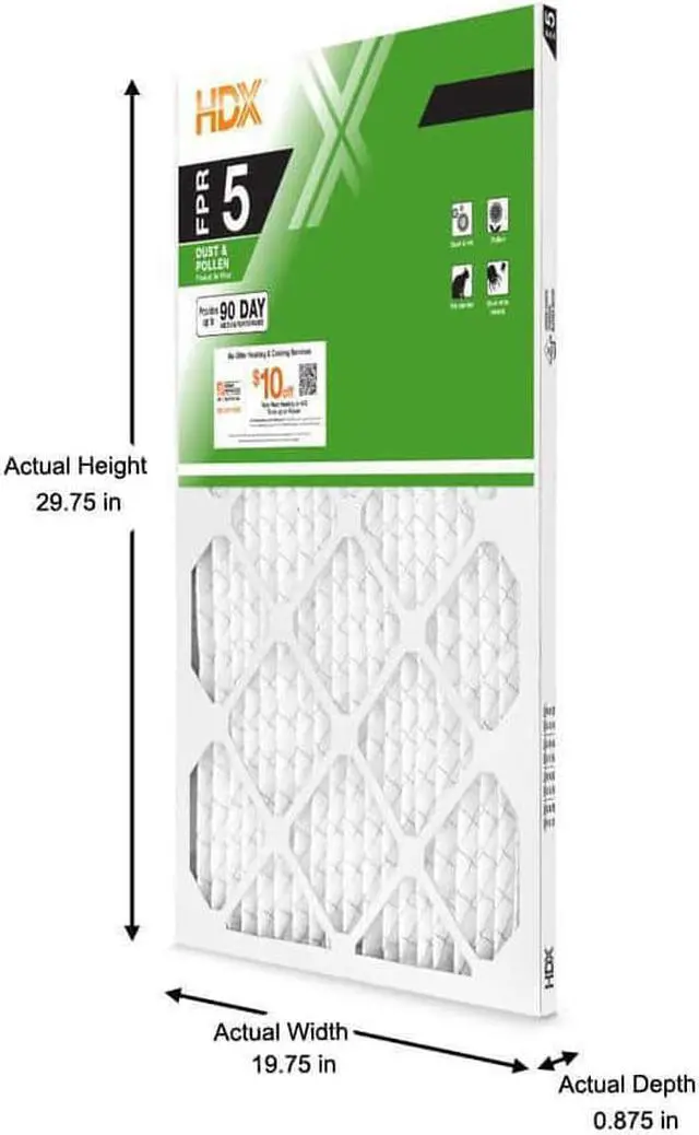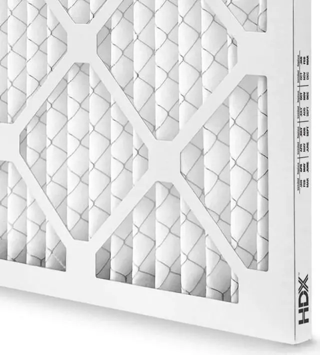 HDX filters are constructed of a durable, moisture-resistant frame with wire supported media for strength and rigidity. The wire-backed Pleated media offers a large surface area which increases the filter's dust-holding capacity and improves its efficiency. The air filter media can be charged electrostatically which means it attracts, captures and traps particles that would otherwise bypass the filter. The air filter's media is rated between a MERV 8 and 13, which is one component of the FPR Rating. FPR or the Filter Performance Rating, is composed of 4-measurements for classifying air filters.