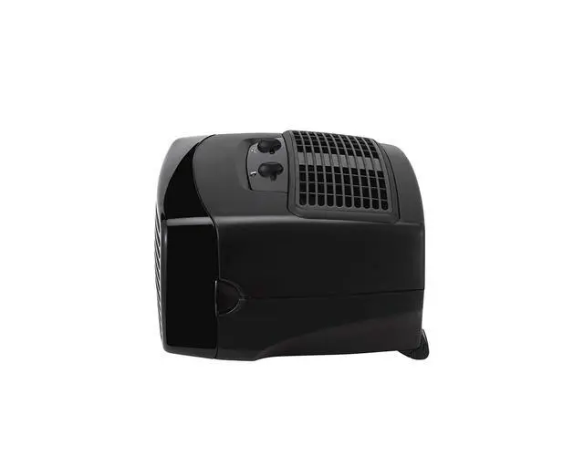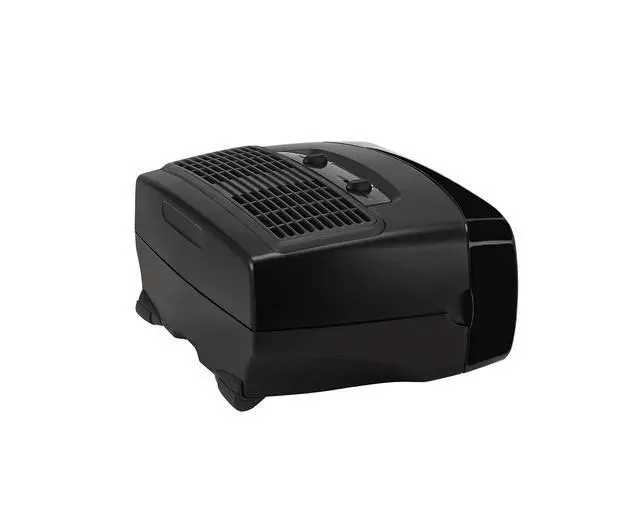 Suited for a 10-by-11-foot room, this air purifier from Holmes improves the quality and freshness of the atmosphere in your home. The purifier stands upright or lies flat, is quiet in operation, and features three power settings. The unit uses a HEPA filter to trap 99% of typical airborne particles, while an activated carbon filter removes odors from the air. Both filters are accessed through a pop-off cover, and sliding switches control the settings.