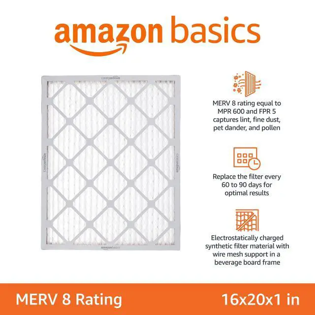 16x20x1 Air Filter 6-Pack, MERV 8 AC Furnace Filters, Allergy Control, Removes Dust, Lint and Pollen, Electrostatic (Actual Size: 15.75" x 19.75" x 0.75")