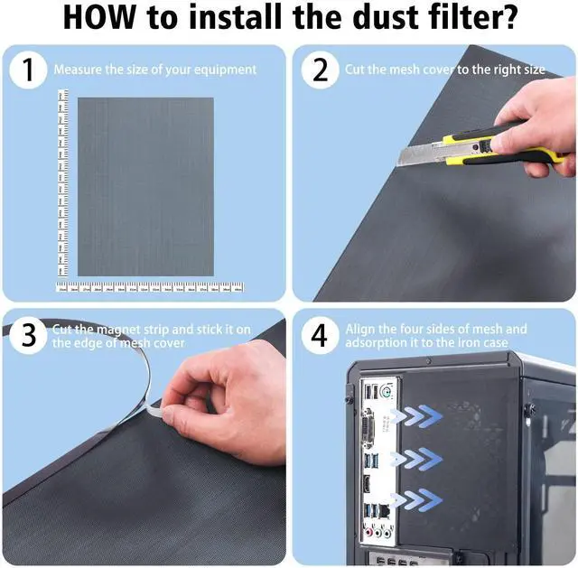 Whats in the Box: Includes 4 packs of magnetic mesh filters. Perfect for multi-fan setups or covering large intake areas. (Note: Not for use on aluminum or non-magnetic surfaces).