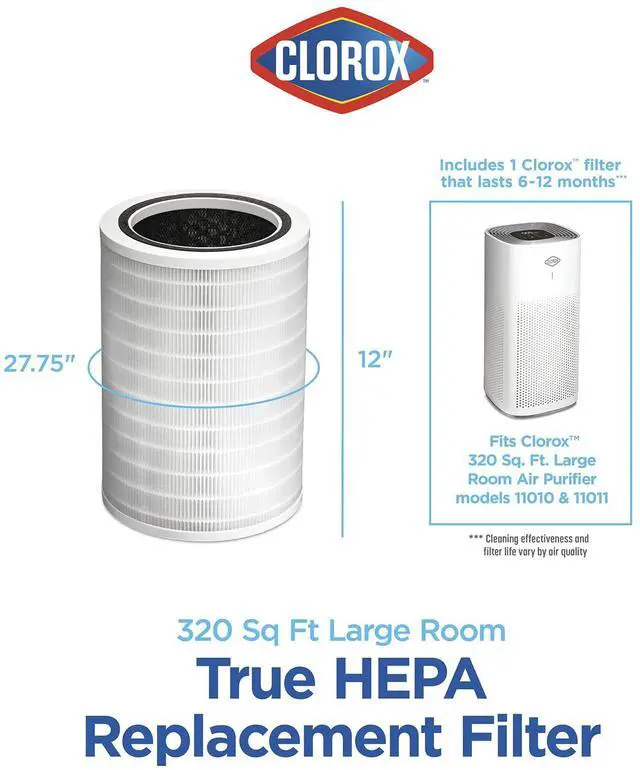 - Fits Clorox 1,500 Sq. Ft. Large Room Air Purifier model # 11010 and Clorox 1,500 Sq. Ft. Large Room Smart Air Purifier model # 11011.