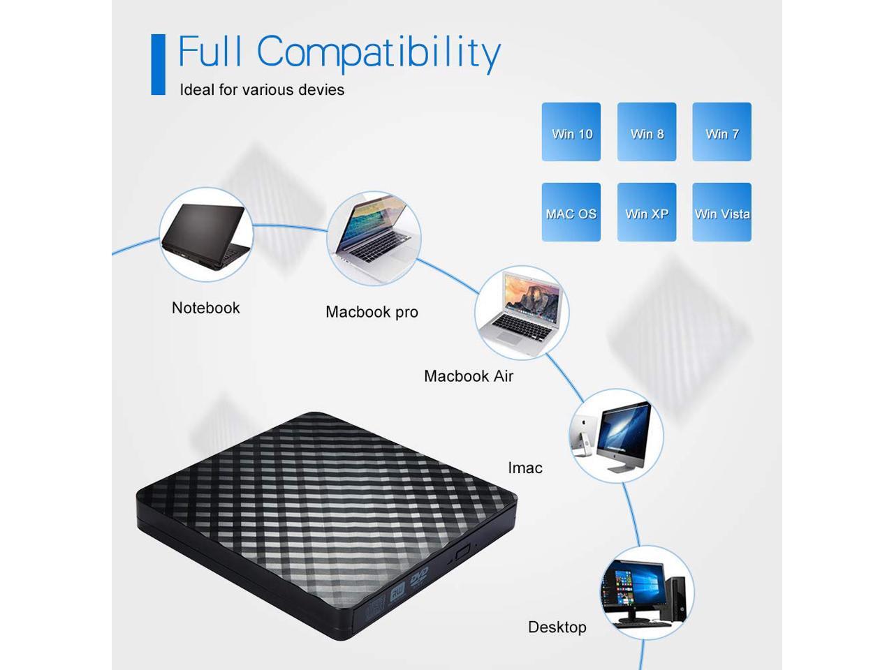 - STRONG COMPATIBILITY: This external cd drives is ideal for various devices. Support windows 2000/ XP/ 2003/ Vista/ 7/ 8/ 10, Linux, all Mac OS system, laptop, notebook, PC, desktop computer. For the desktops, please remember to connect the device to the USB port of the motherboard for normal use.