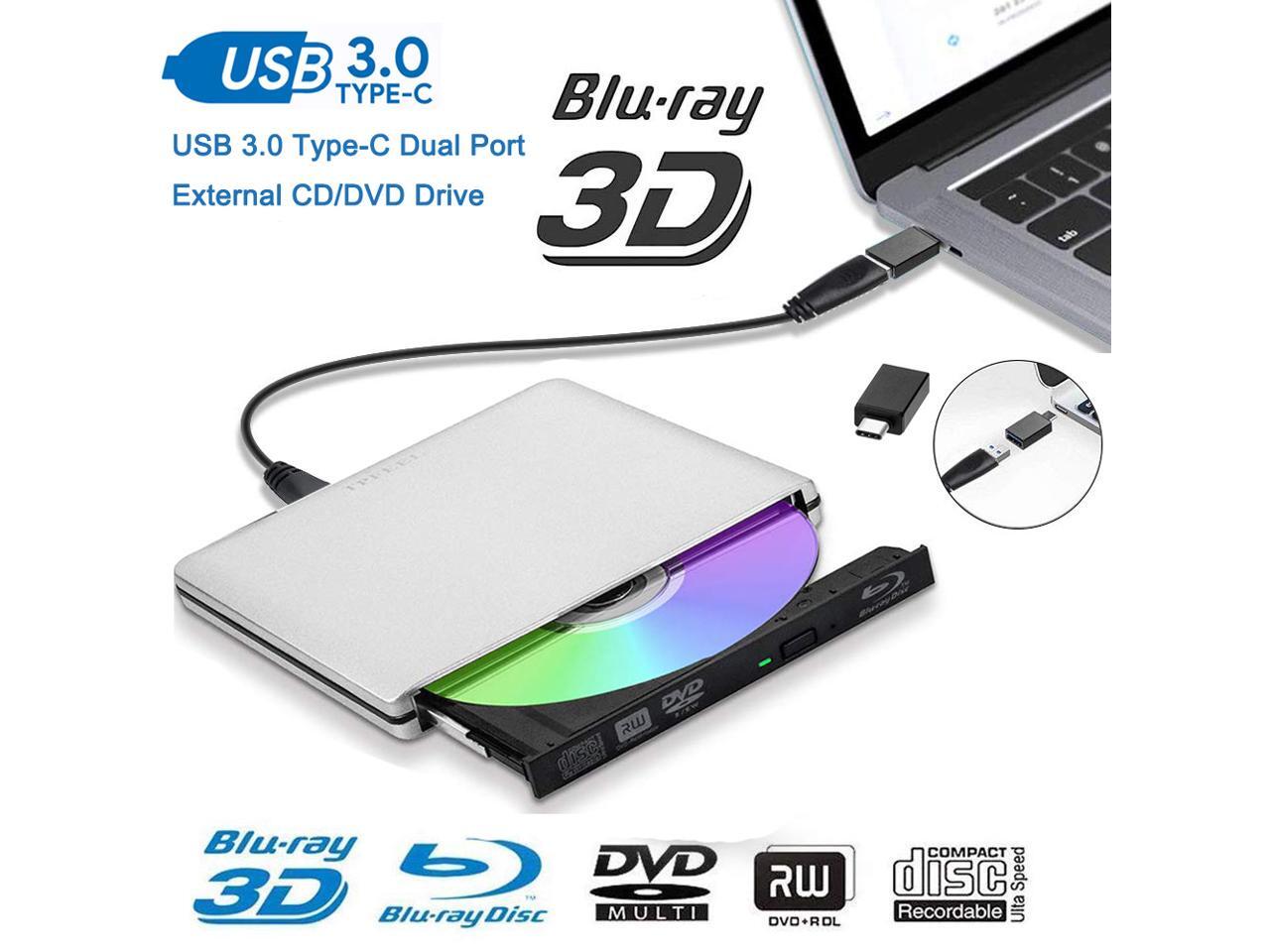 External 3D Blu Ray CD DVD Drive,ESTONE Portable USB3.0/Type-C Blu Ray CD/DVD+/-RW Burner Player Writer Reader Rewriter for PC Netbook Laptop Desktop with Mac OS Windows XP/7/8/10/Vista-Silver