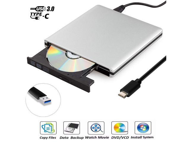 USB C & USB3.0 2 IN 1 External CD Drives, Portable Aluminum CD DVD Writer Super Optical Drive with High Speed Data Transfer Burning and Reading for Windows 10 8 7 Apple MacBook Air, Pro, iMac, Silver