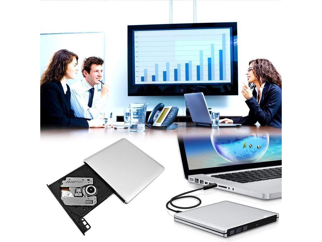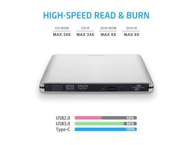 Aluminum External Latest Type C USB 3.0 Ultra Slim Portable DVD Rewriter Burner,External DVD Drive Optical Drive CD+/-RW DVD +/-RW Superdrive for Apple Mac Macbook Pro and laptop(Silver)