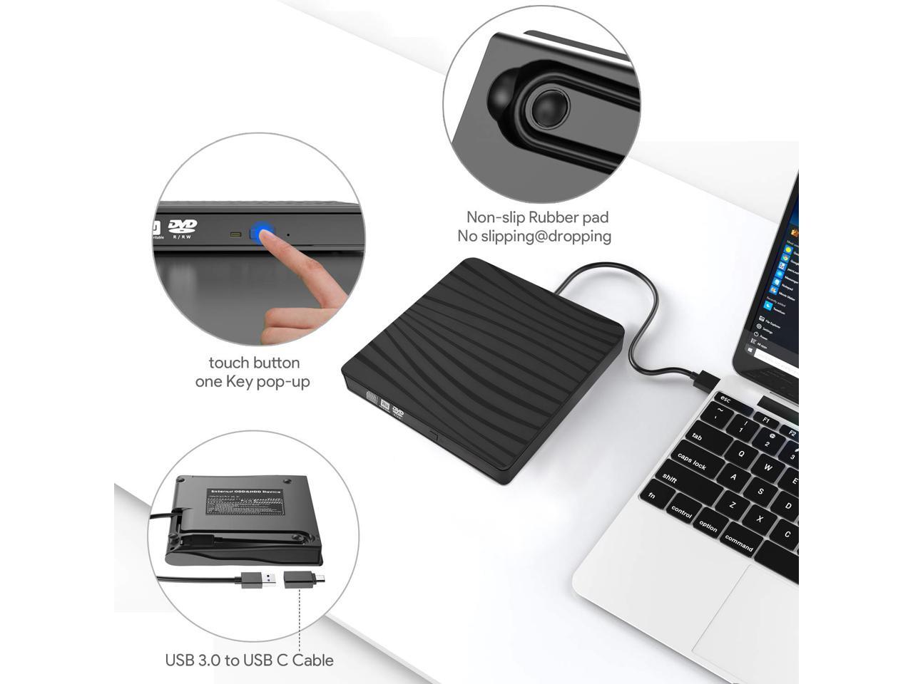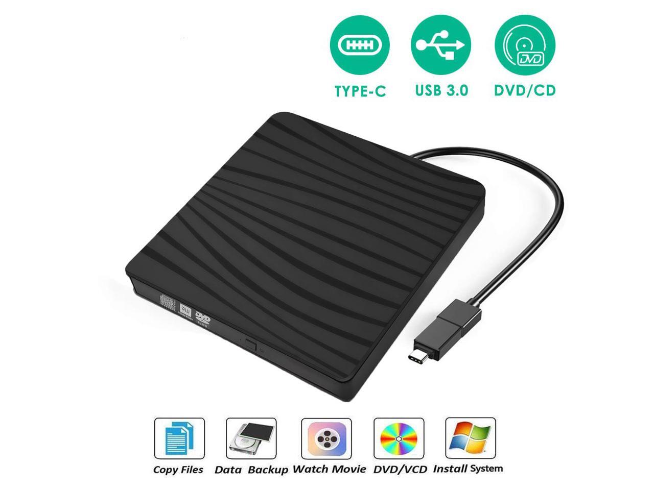 USB3.0 DVD Drive for PC DVD Drive Computer CD Drive CD/DVD-ROM External Portable Type-c DVD Burner Palyer/rewriter Compatible with The Latest MacBook pro/asus/dell Laptop etc. with USB-C Port,Black