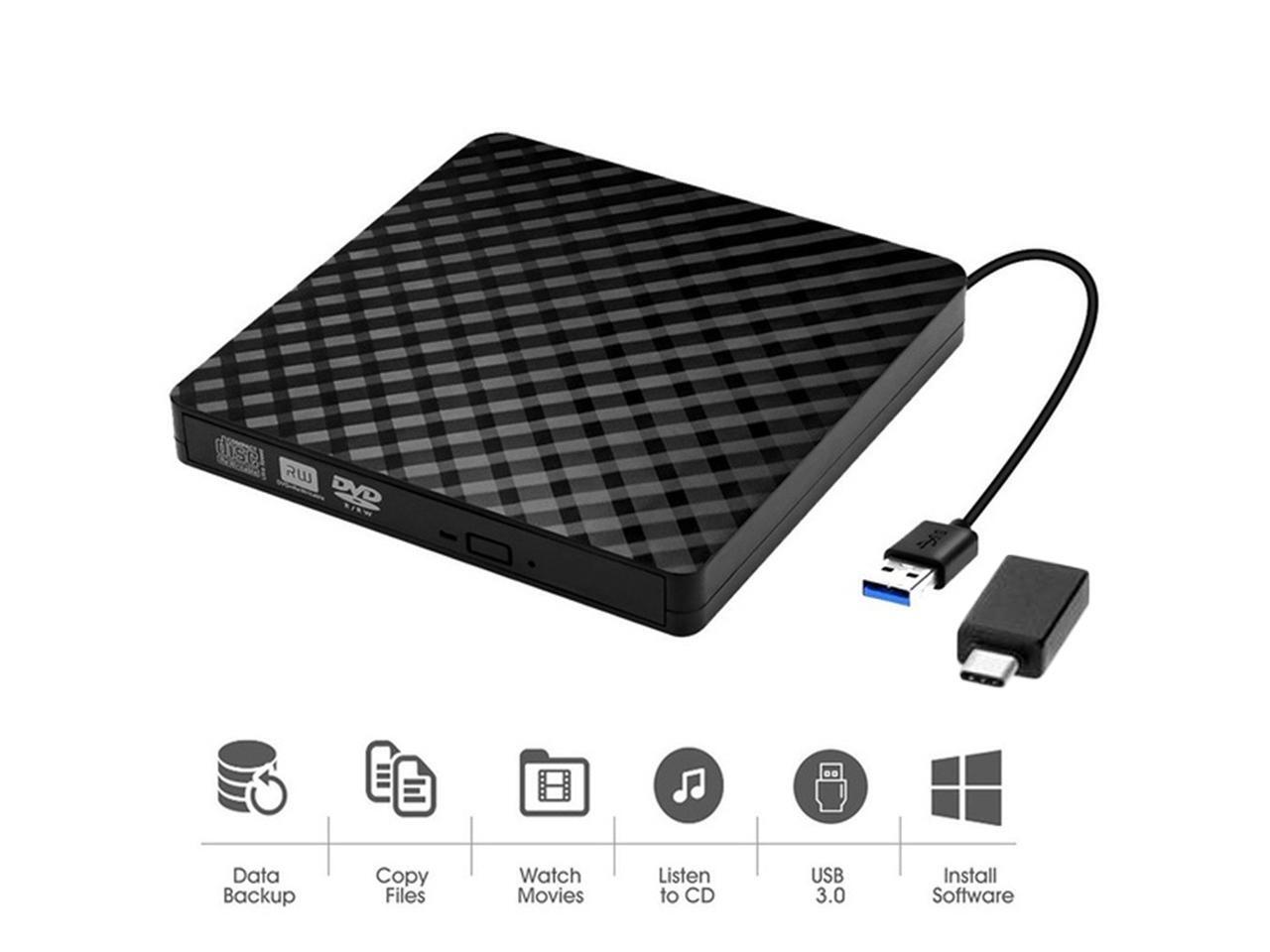 Jansicotek USB 3.0/Type-C External DVD Drive USB3.0 DVD RW CD Rewriter Burner Portable Optical Drive Player For PC Laptop Macs OS Windows 10 7 8 XP