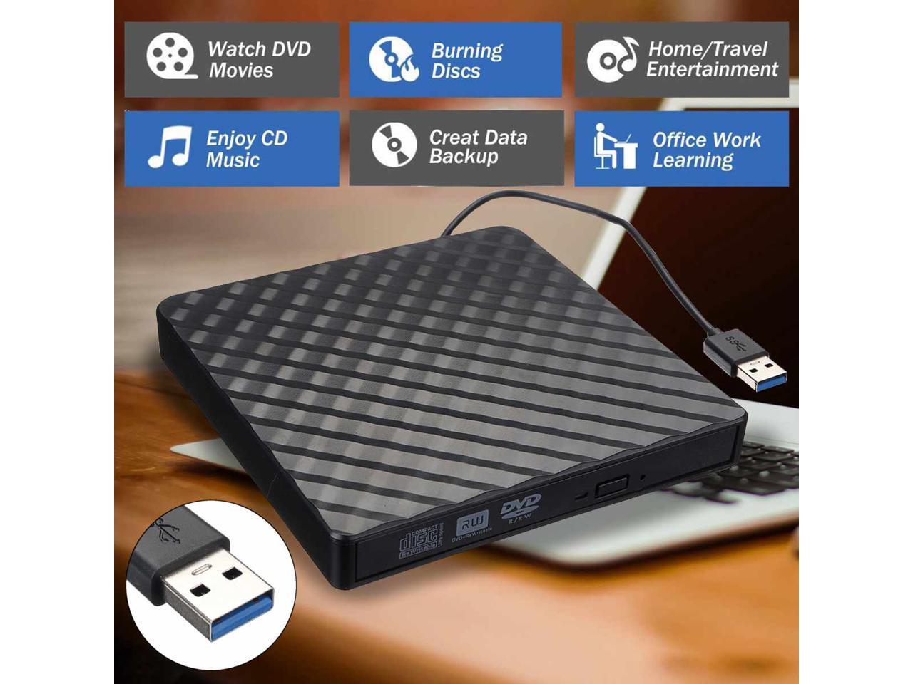 - Wide Compatibility - This external DVD drive compatible with Windows XP / Win7 / Win8 / Win10, Linux, Mac OS system. Fit for laptops / desktops / Macbook without a internal drive. With this CD/DVD burner, you can watch DVD movies, install software, listen to music, burn files, burn movies to CD/DVD etc.