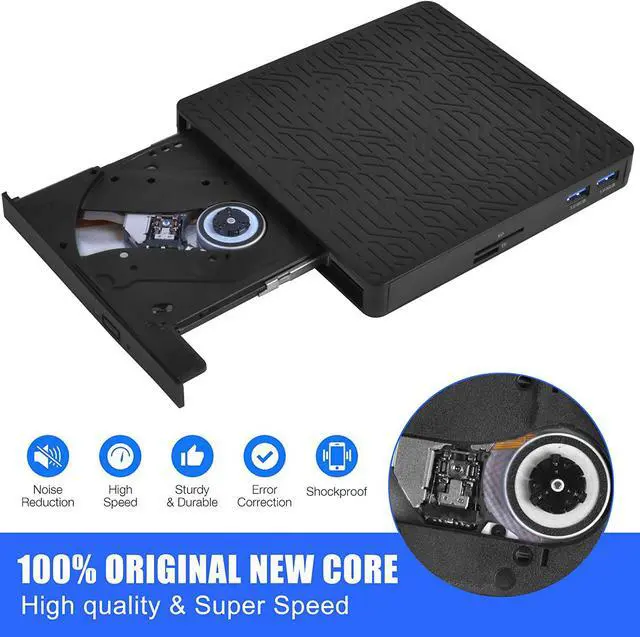 Compared with others, This external DVD drive has TF and SD card slots,two additional USB 3.0 ports(Others are actually USB 2.0).So it can be used as a USB 3.0 HUB.This DVD drive supports to play and burn DVD/CD/Mini Disk. It can transfer photos and videos directly from SD / TF card into the computer, USB Hard Drive and flash drive.