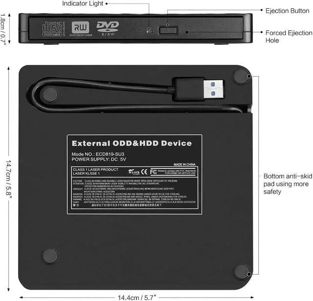 Supported Media Types: CD-ROM, CD-R, CD-RW, DVD-ROM, DVD-R, DVD-RW, DVD + RW, DVD + R, DVD + R DL, DVD-R DL, DVD RAM