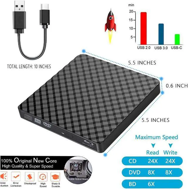 3. Please charge your computer when connecting with this CD/DVD external drive. In case of failing to read the CD/DVD due to low power. Features Plug & play True mobility, no external power is needed, fully powered by USB ports Portable, compact