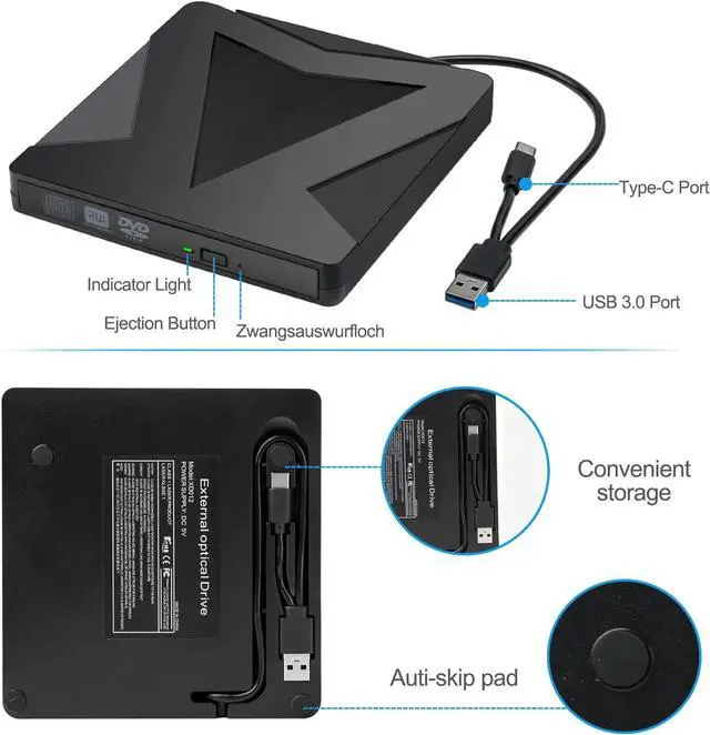 External USB 3.0 Type C DVD CD Drive support Macbook, PC, laptop