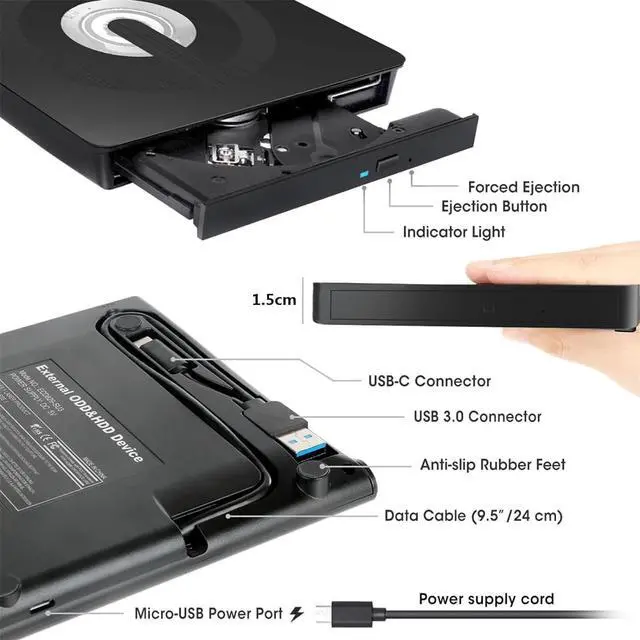 - USB 3.0 & Type-C high speed interface: This ultra slim DVD burner adopted USB 3.0 & Type-C technology. It allows faster data transfer speed.