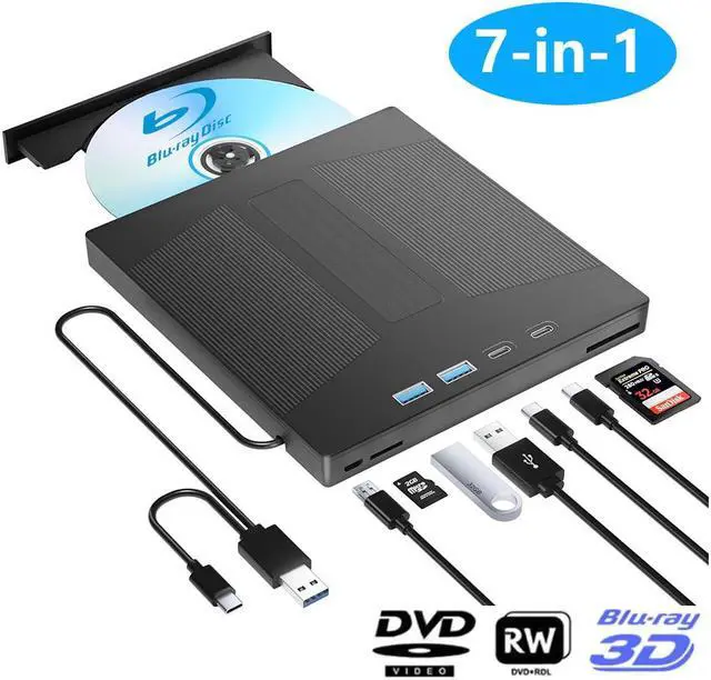 This Blu-ray drive has 1*SD card slot, 1*TF card slot, 2*Type-C ports, 1*USB 3.0+1*USB 2.0 ports,and 1*2-in-1 cable(usb3.0+type-c) for data transfer or charging purposes.