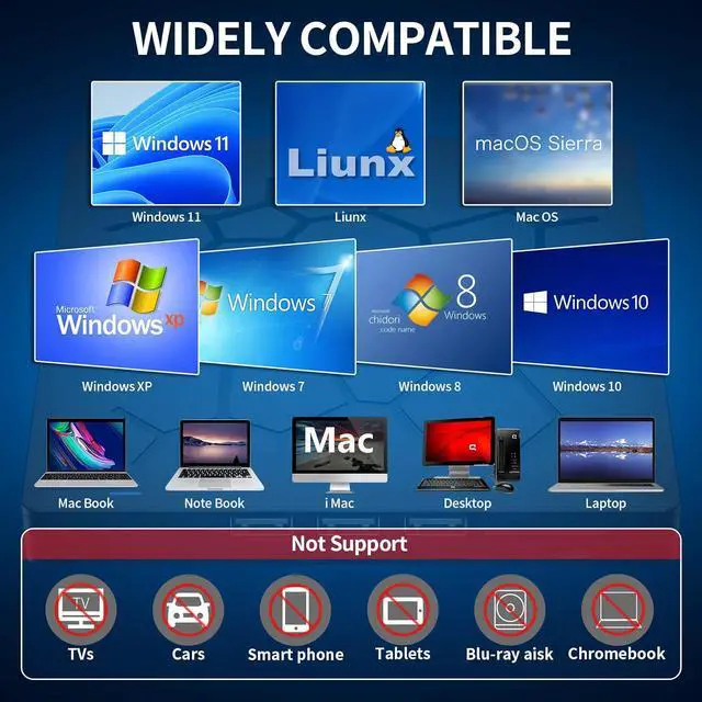 (Note: Not compatible with iPads, phones, Chromebooks, TVs, cars, or Blu-ray players.)