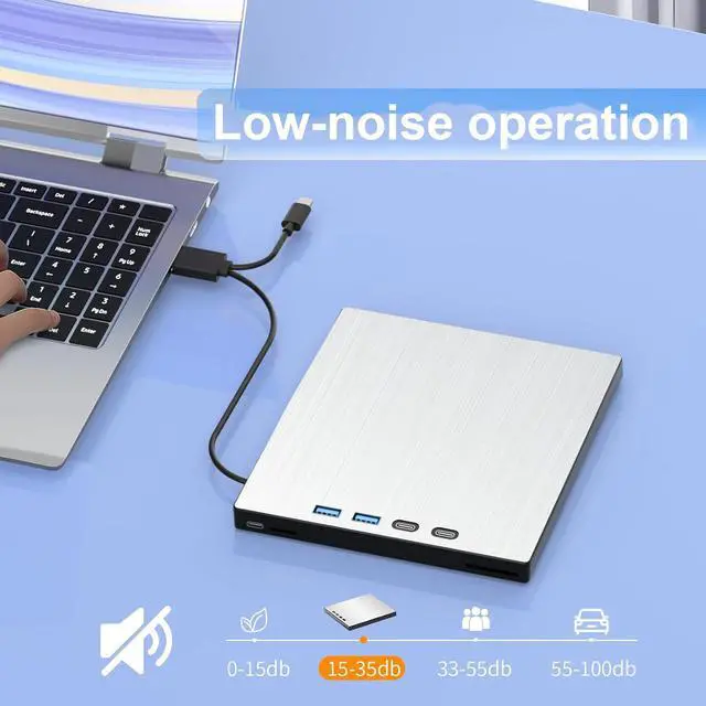 our external DVD burner not only serves as a CD/DVD burner/reader, but also as a 7-in-1 USB hub. The CD drive has dual USB 3.0 and Type-C ports, a separate SD/TF card slot. This multifunctional CD burner is compatible with devices such as USB hard drives, wireless mice, keyboards and other USB accessories. The SD/TF slots are perfect for transferring photos and videos from cameras to computers.