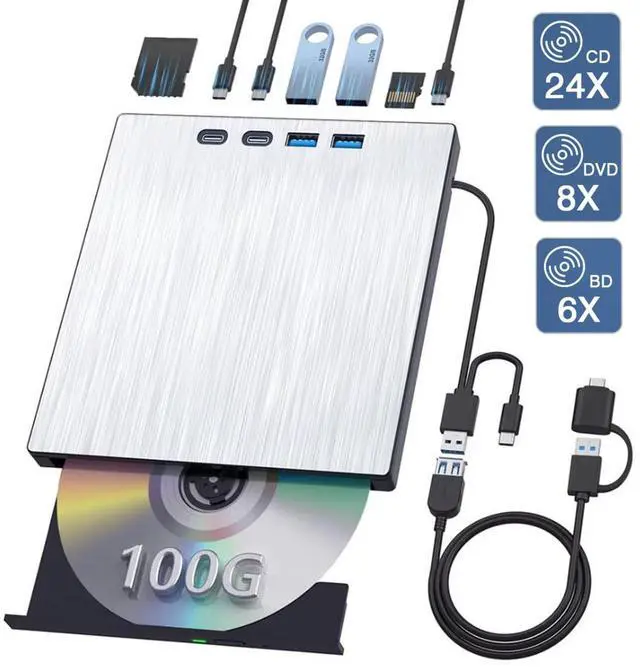 For Windows OS: You can see the BD RW icon in Windows explorer. Use the data cables on the back (bottom) of the optical drive to connect your computer's USB port or desktop computer host. We have a power cord that we recommend using together. Do not connect USB extension hub.