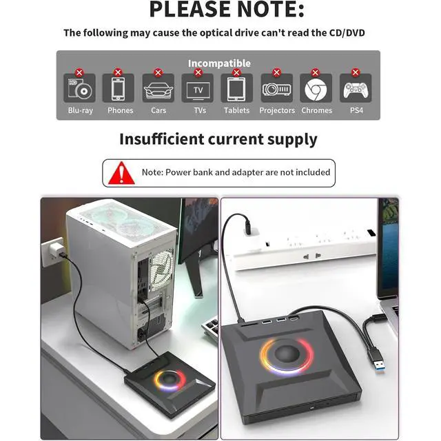 Broad System Compatibility: Working seamlessly with Windows 11, 10, 8.1, 7, Vista, XP, 2000, alongside most Linux distributions, macOS 10.16 or later. Note: Not compatible with ChromeOS (Chromebooks), iPads/tablets, TVs,vehicles (cars/trucks),or Blu-ray/4K discs