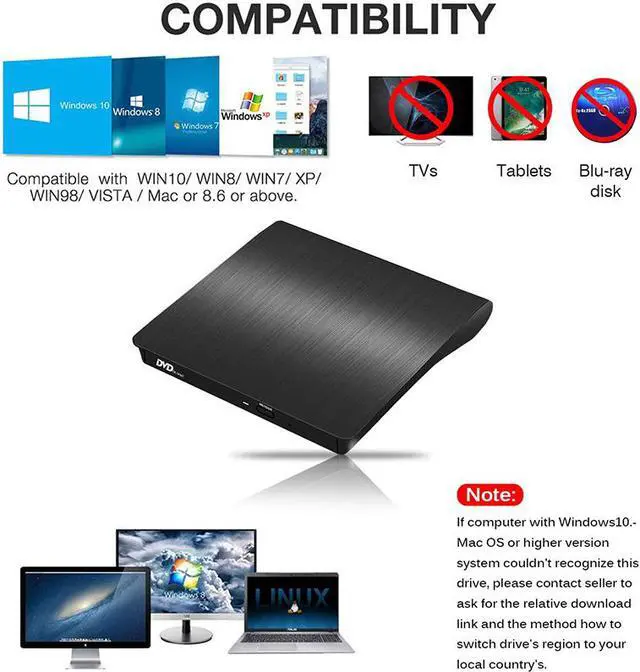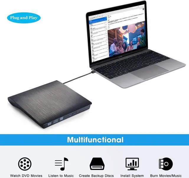 A great addition to today's laptops or desktops that mostly leave out optical drives. It supports read-only, write-once and rewriteable CD/DVD media including double-layer DVDs, offering you the ability to watch DVD movies, listen to CDs, load programs from CDs/DVDs, and backup your photos, videos and personal data.