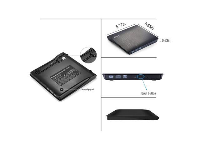 - Intelligent technology: This Ultra slim CD/DVD player for laptops comes standard with an eject button so that you never have to worry about your disc getting stuck inside this external CD/DVD drive.