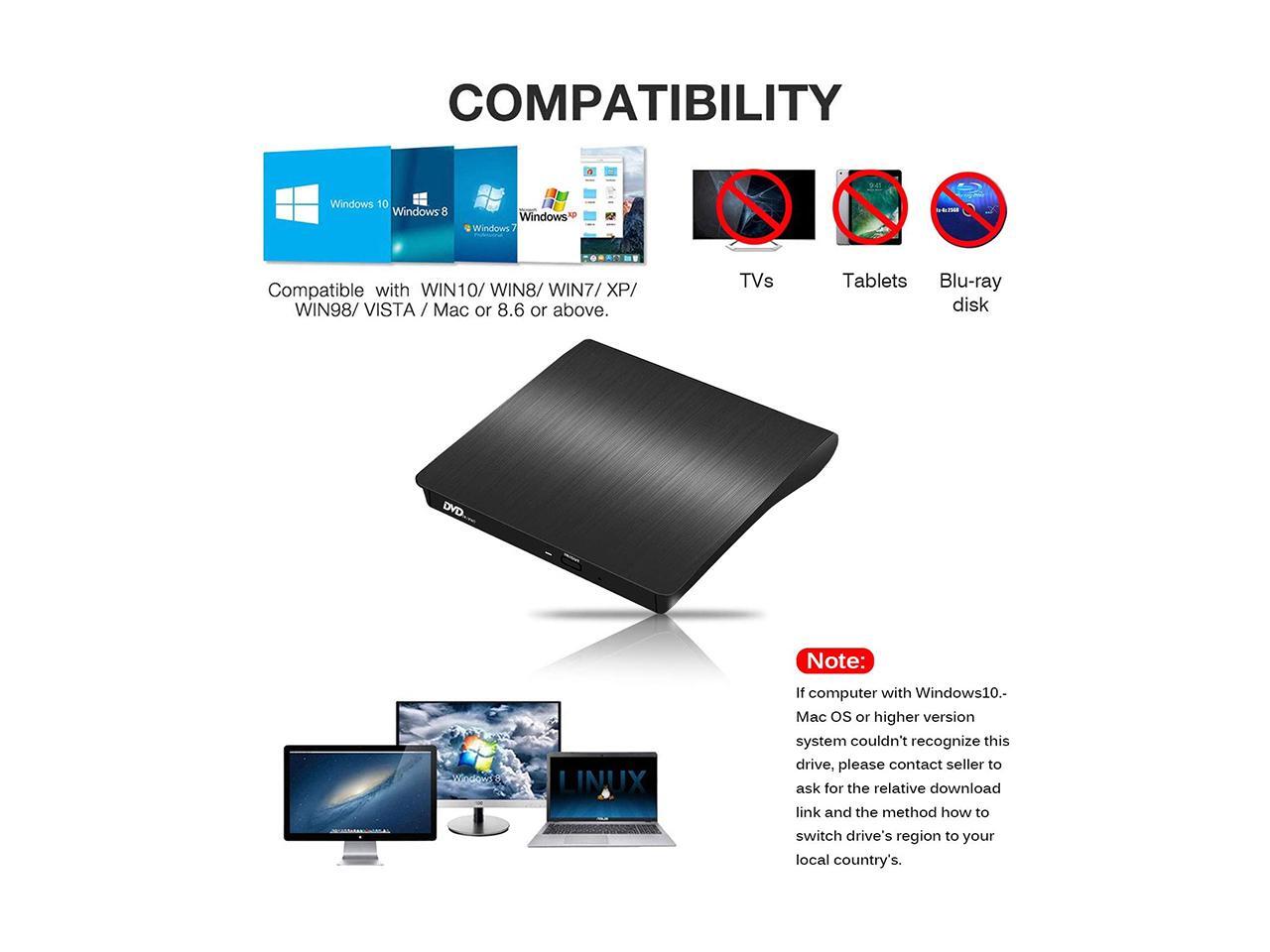- Support Compatible system this DVD Drive is ideal for various devices. It support Windows XP/2003/Vista/7/8. 1/10, Linux, all version Mac OS system.