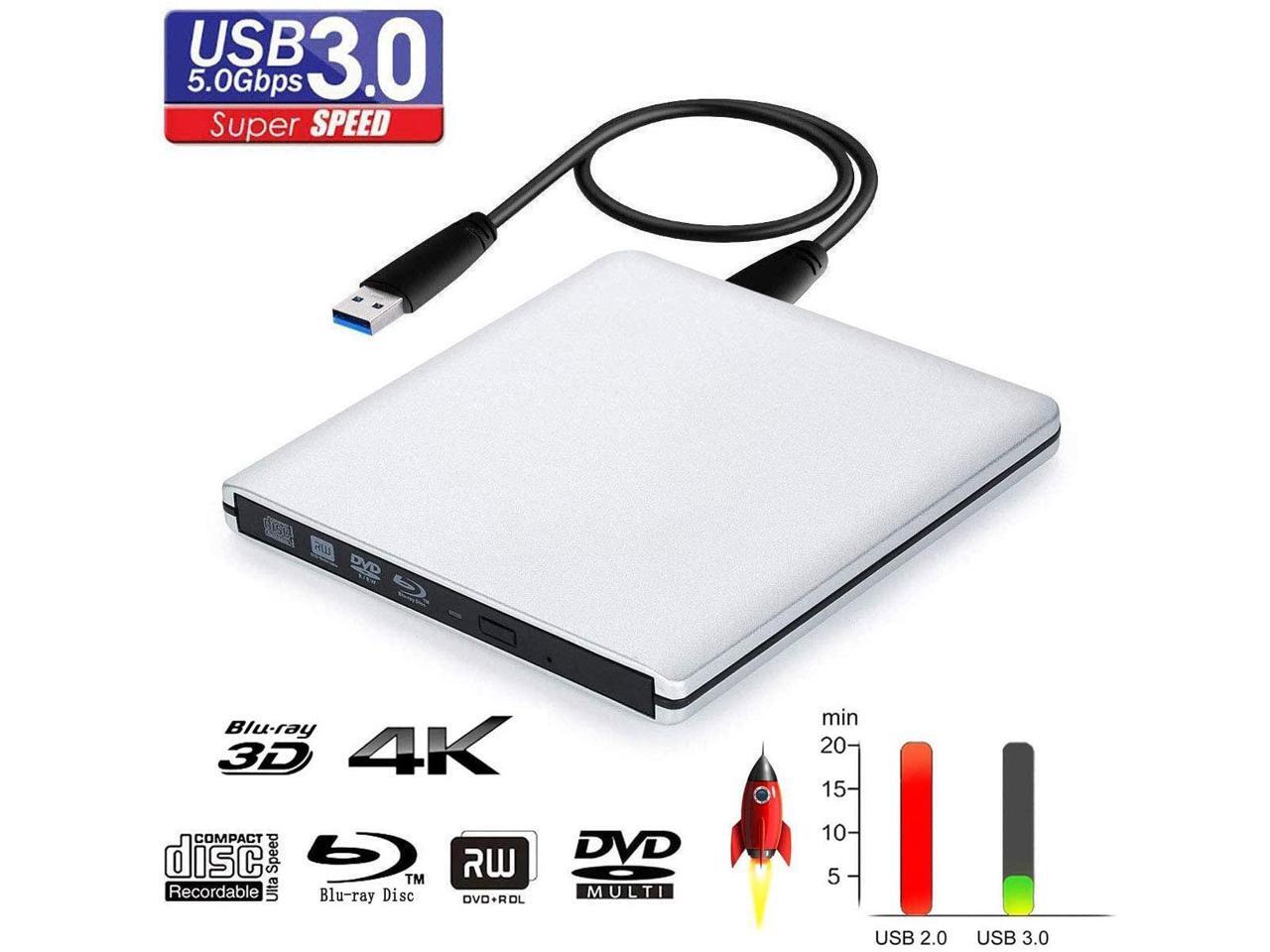 Ultra Slim 4K Blu-Ray Burner Blu-ray Writer External DVD Drive CD/DVD ROM/RW Drive USB3.0 DVD Reader 3D Blu-Ray Reader CD/DVD Burner for Desktop/Notebook