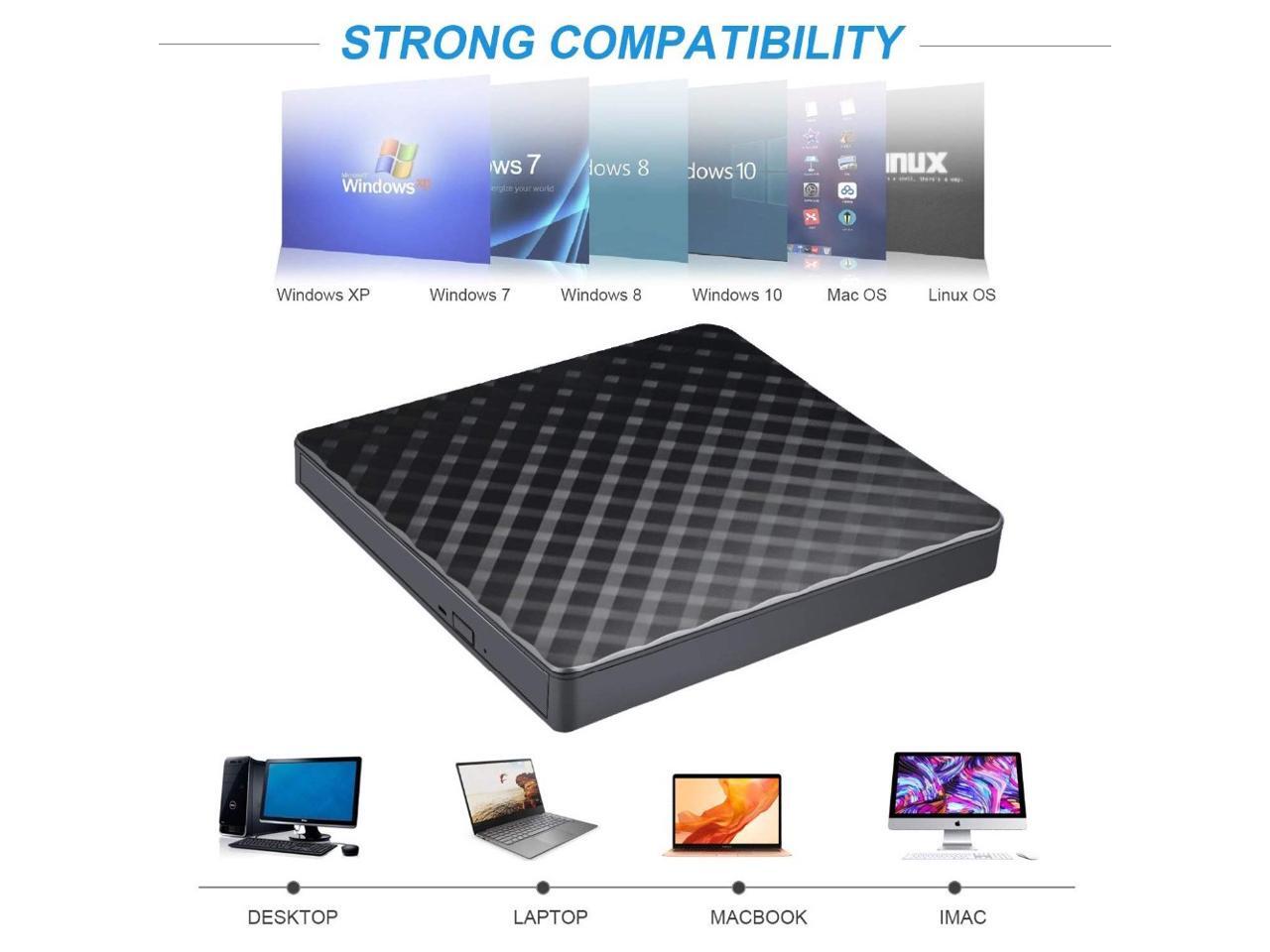 Equipped with high speed interface, it provides you more faster data transfer speed and more stable data transmission, Meanwhile it is compatible with USB 2.0. The CD/DVD drive can transfer the data very fast when you use this External CD Drive record CD, music, videos, installing software or create CD/DVD backup disc/CD