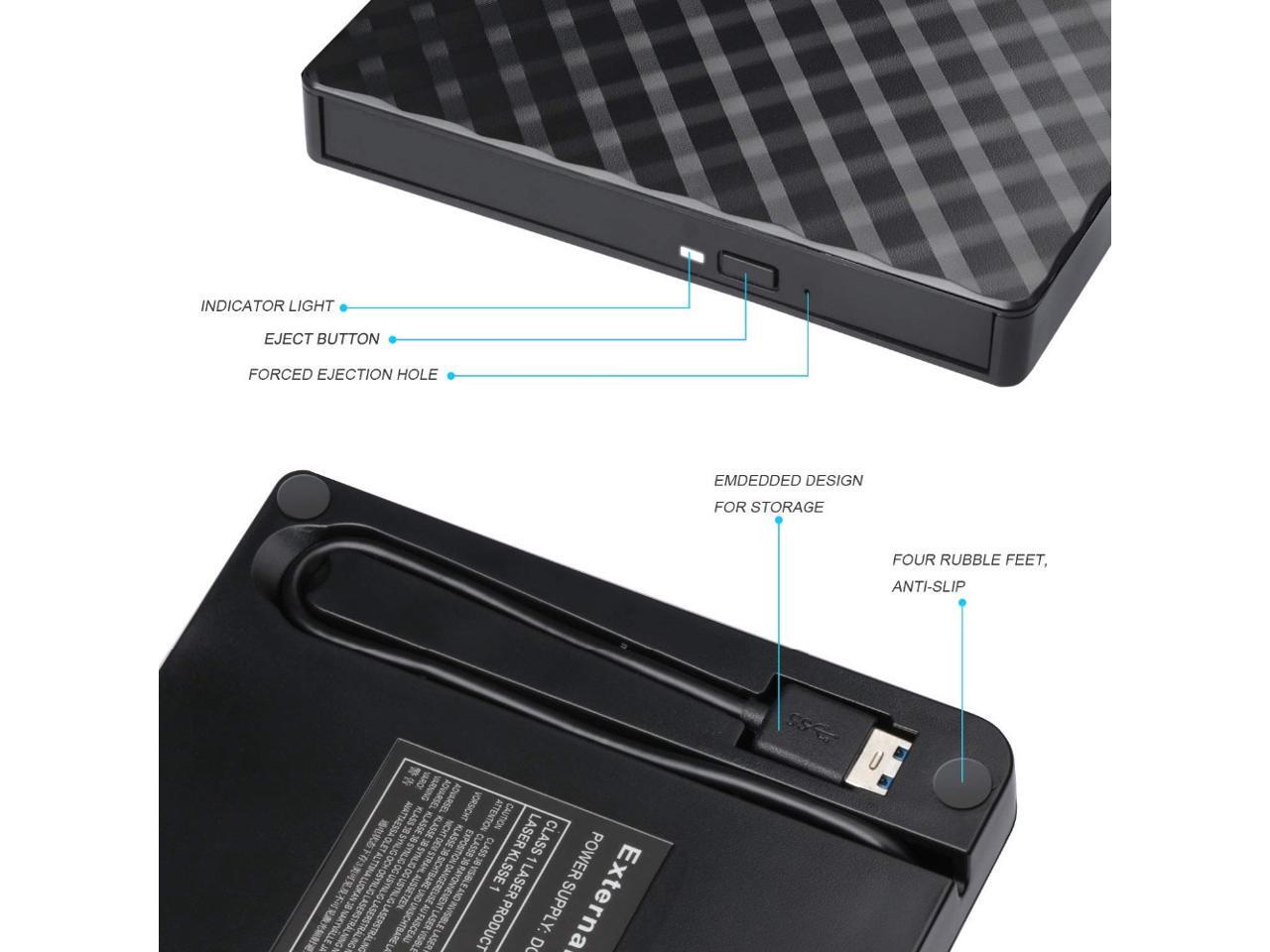 Plug and play, no external driver required. USB 3.0 External DVD Drive is a perfect companion for computers without the internal drive. You can burn files, install software and create a backup CD/disk