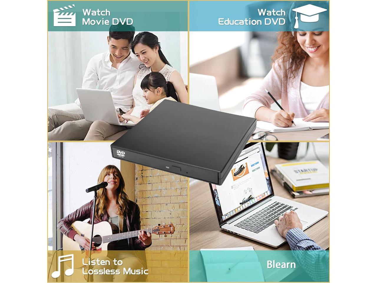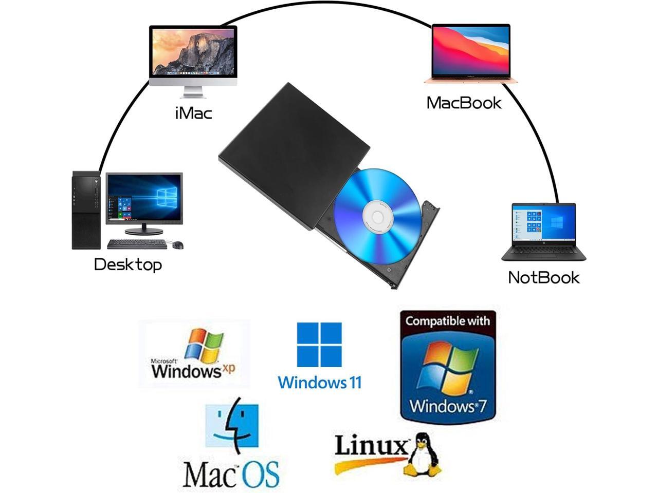 External CD DVD Drive, USB 2.0 Portable Optical Disc Drive, External CD RW Reader DVD Player for Laptop Desktop PC Mac Windows 11/10/8/7, Mac, Linux OS giyqxHw